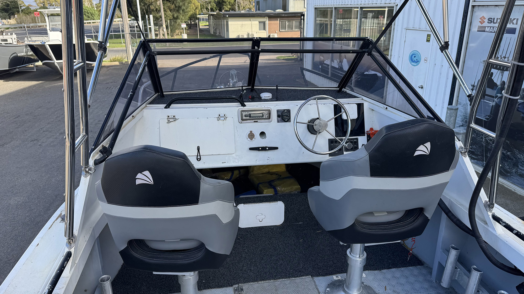This package includes: - 206 Barcrusher 640WR- 2006 Suzuki DF150- 700h- Tandem Trailer and spare- Hummingbird Sounders and transducer - Marine Radio...