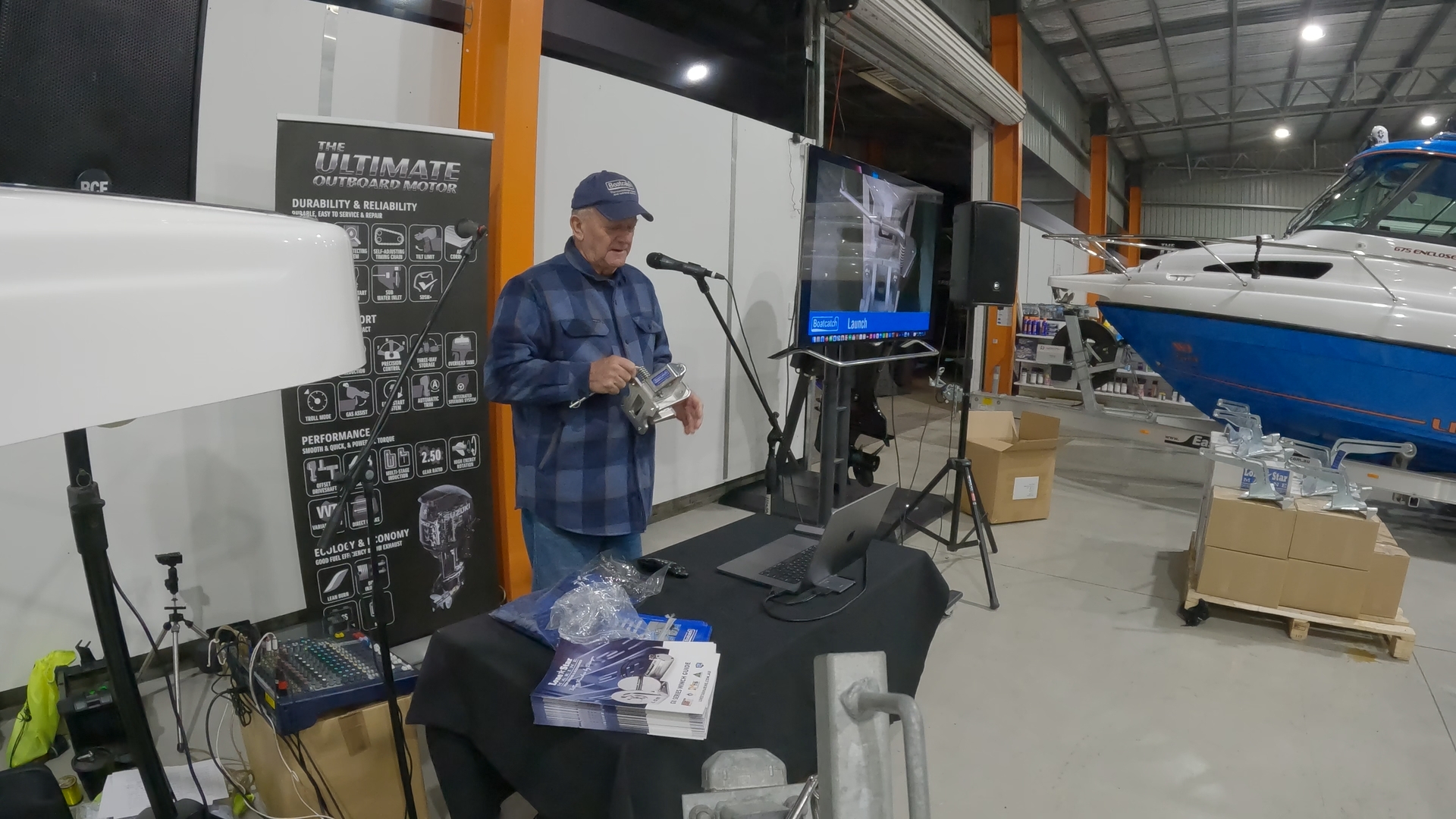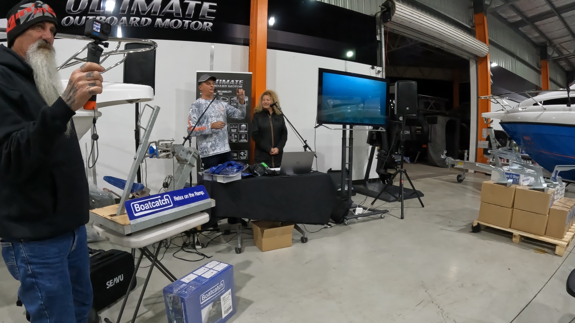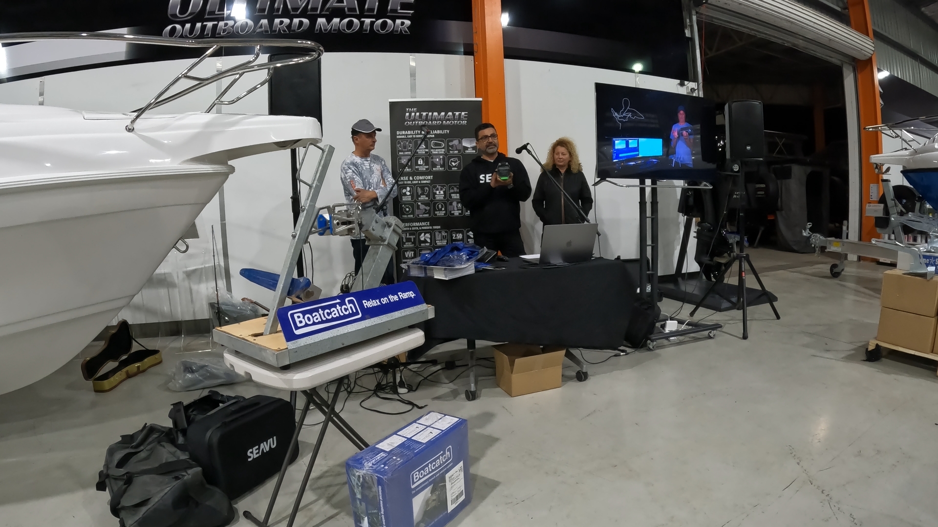 The talk continued with Barry from Boatcatch, explaining the benefits of having a boat catch on your boat and actually showed the high quality of the unit that Boatcatch offers.