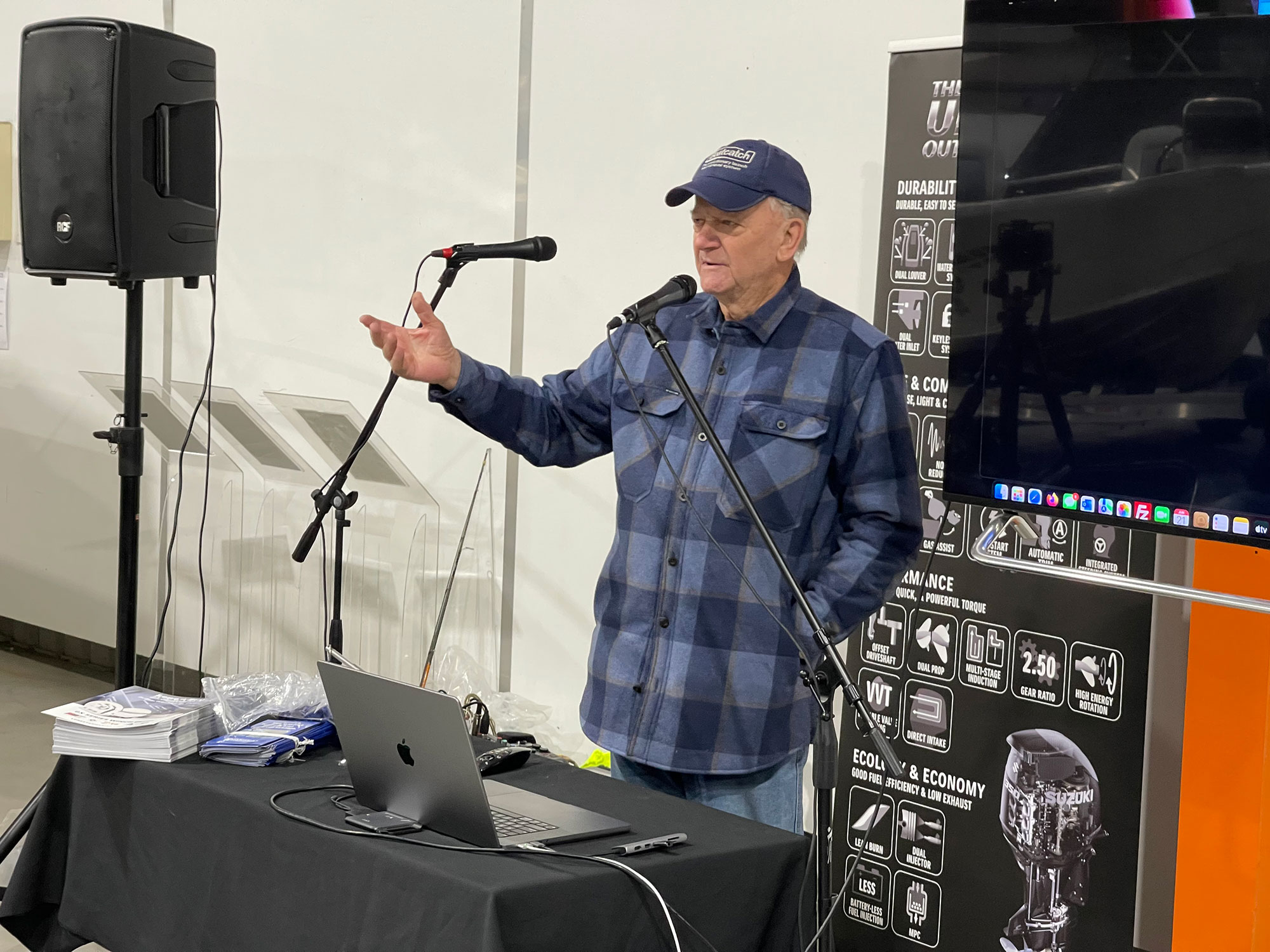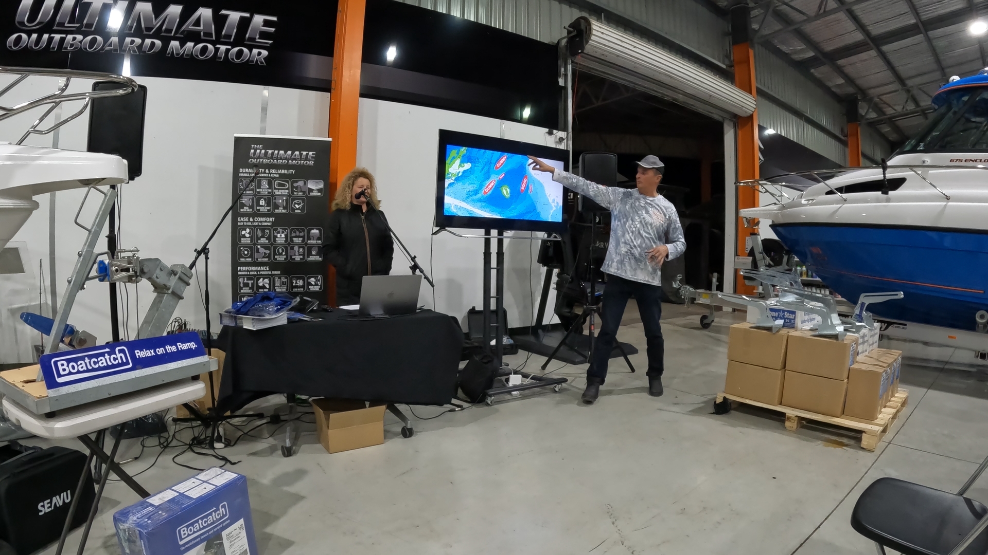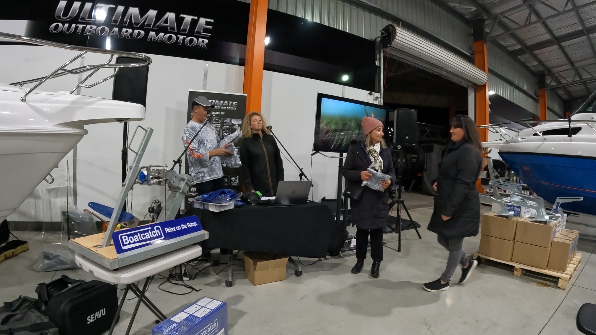 The talk continued with Barry from Boatcatch, explaining the benefits of having a boat catch on your boat and actually showed the high quality of the unit that Boatcatch offers.
