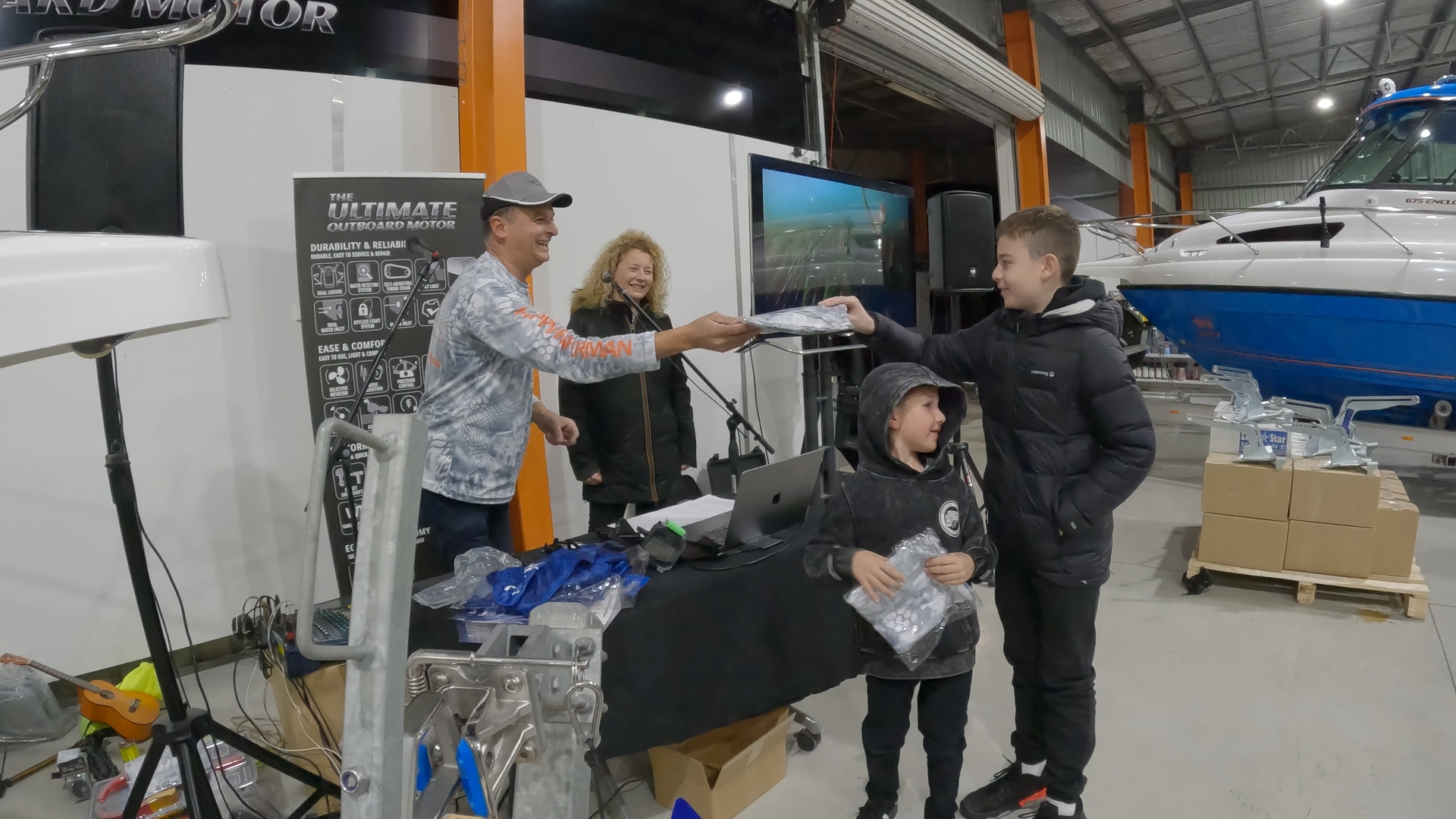 Then, the Happy Fisherman crew started their presentation by giving the kids and women a Happy Fisherman shirt. They also gave out some vouchers and a few giveaways before starting their presentation. The fishing enthusiasts got to find out what is baiting at the moment, where and how to target them. Additionally, there was a full presentation of the underwater gadget that they use to film all the underwater footage you see in the TV show. SeaVu just received a global award for innovation in the video and adventure category, and we were the first to find out about it.