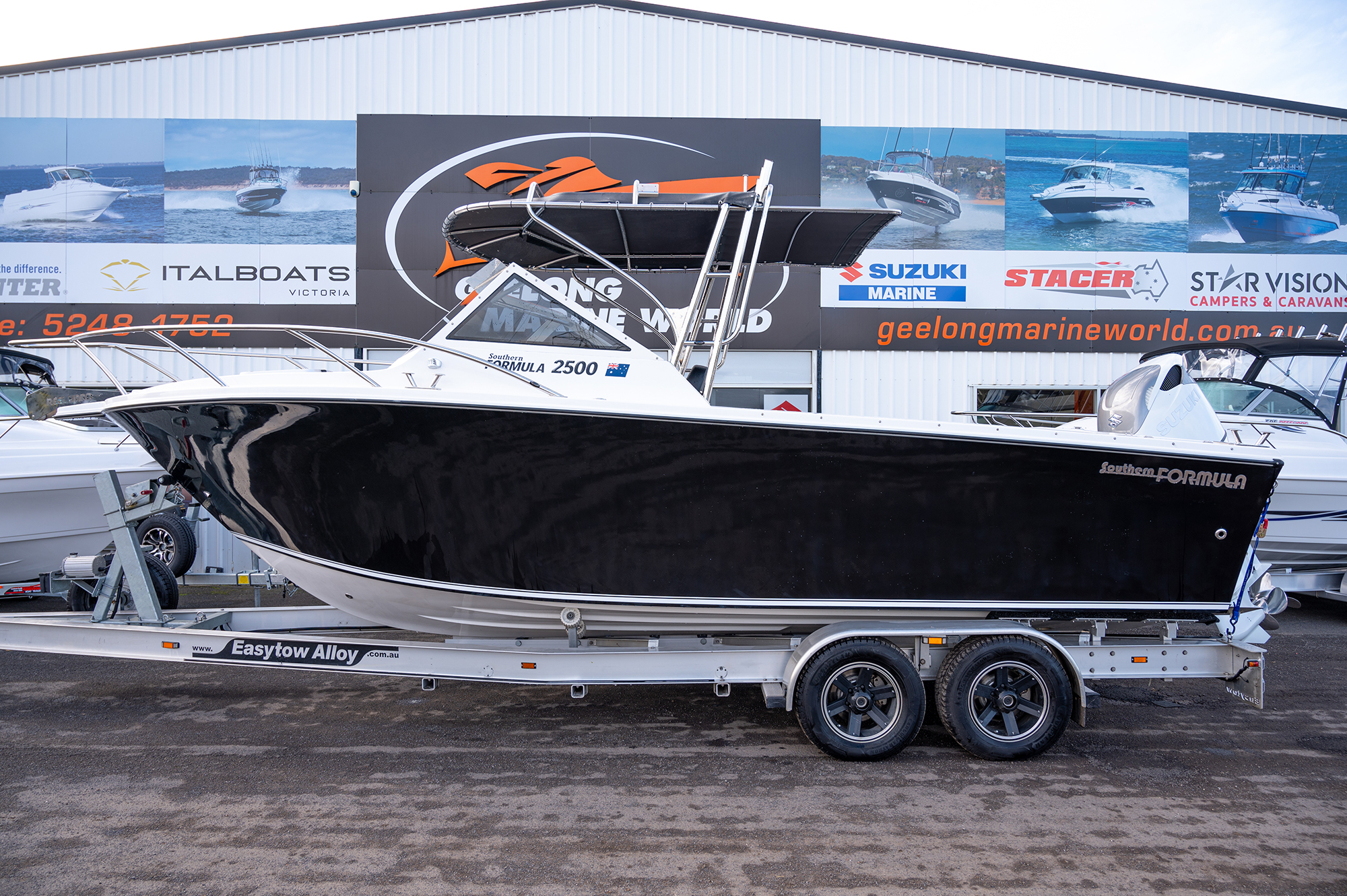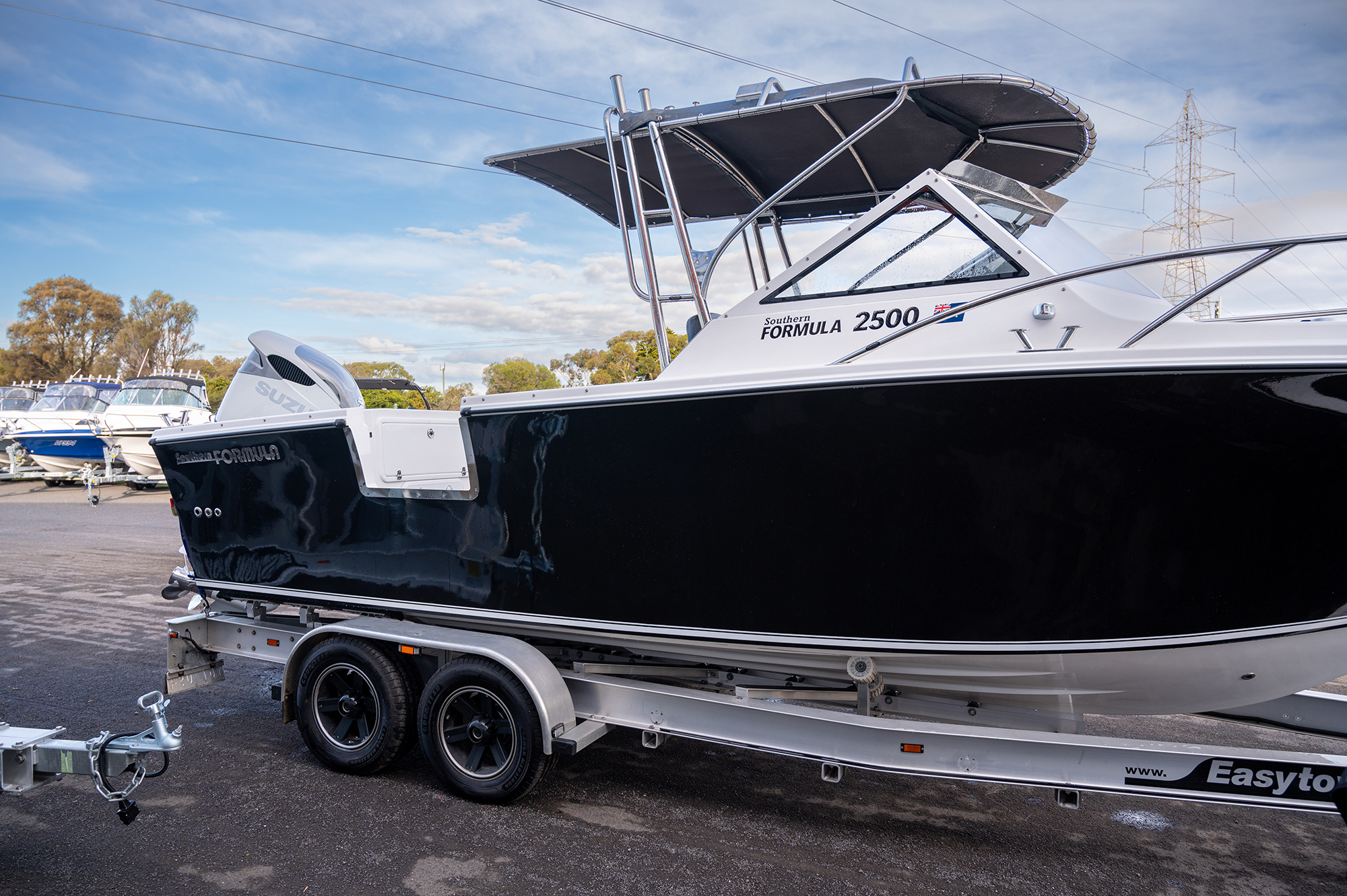 Fishing Machine – Ex Demo Southern Formula 2500 with brand new Suzuki 325HP on Eazytow trailer.