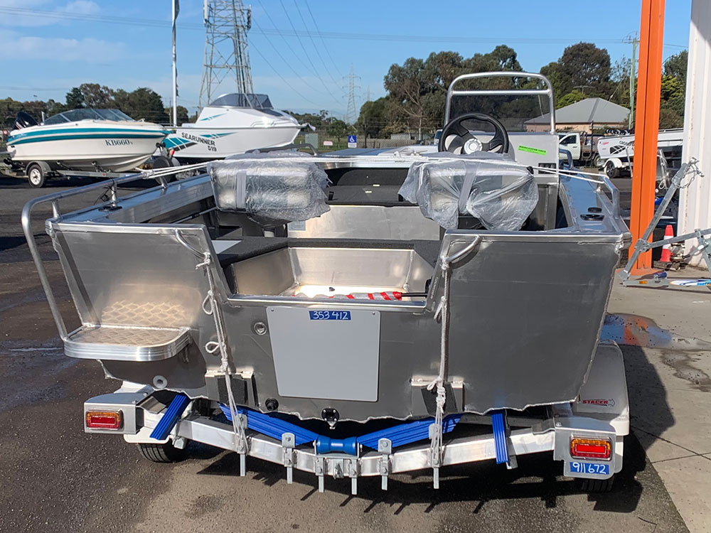 Just Delivered! We got four Stacer Outlaw 429 boats in stock ready to set to your needs! One in white color and three in standard aluminium finish. All the boats are SIde Console.