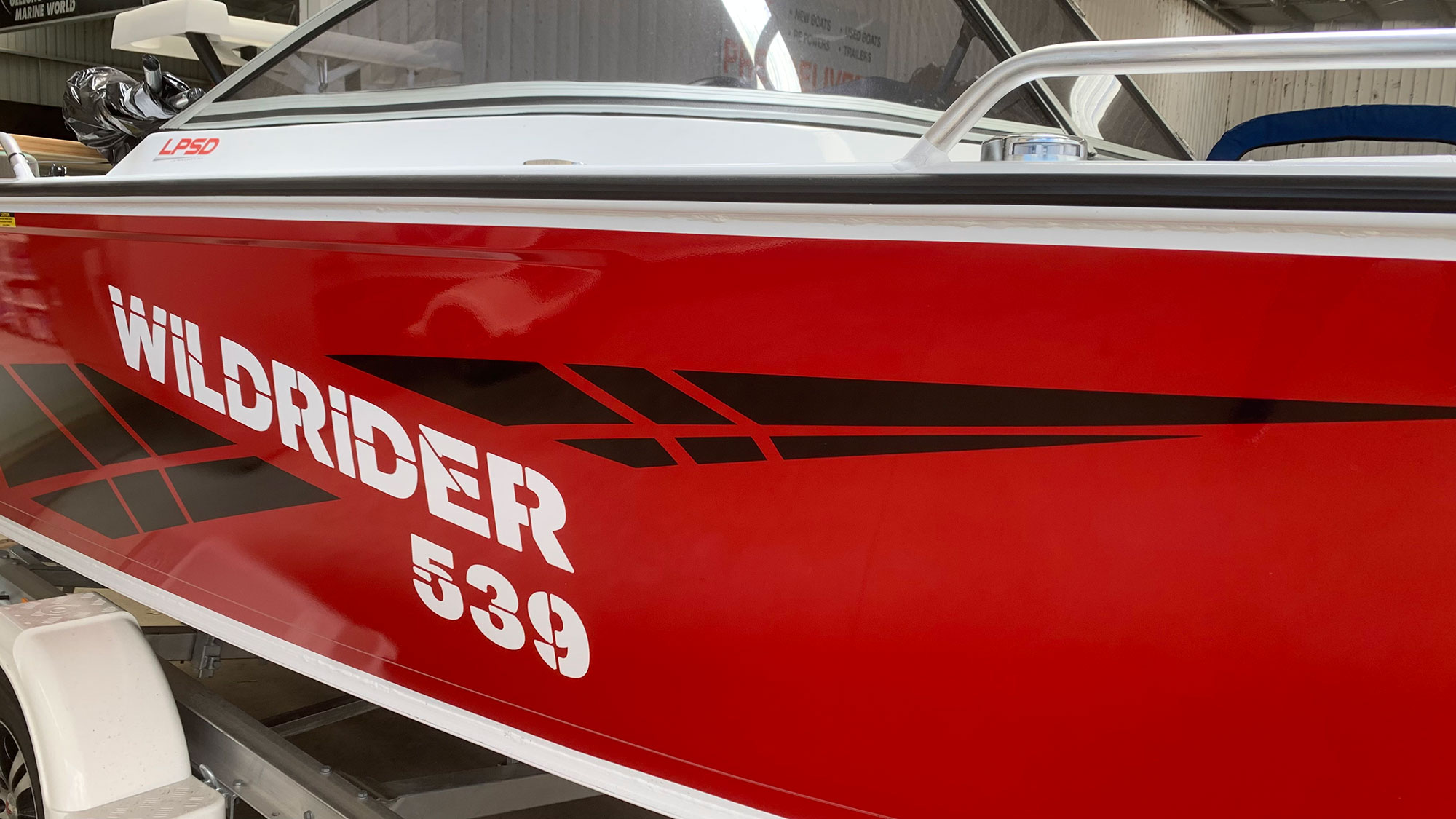 NOTE: The boat in stock is a beautiful red color with black stripes